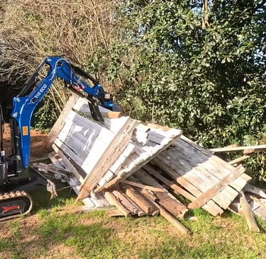 Nous devions vider un garage, casser la base en béton d'un ancien pressoir puis déblayer les détritus et les gravats avant de niveler le sol en terre du garage